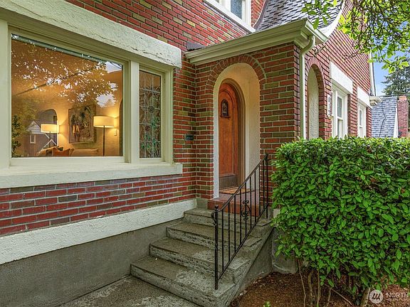 Classic Queen Anne brick Tudor- Gracious formal entry, living & dining rooms with coved ceilings, beautiful millwork, leaded windows, gorgeous hardwoods. Sweeping views from large windows in the day rooms continue on the expansive sunny deck, just off the kitchen and dining room, perfect for summer entertaining! The ideal layout features 3 spacious bedrooms and 2 baths upstairs, including the view primary suite with walk-in closet and modern bath. The finished lower level offers a large media/ rec room that also makes a great guest suite as it includes another 3/4 bath- plus a perfect office or gym space, lots of storage, and access to the attached garage. Fenced back yard for play, and a location with easy access to everything! Coe Elem.