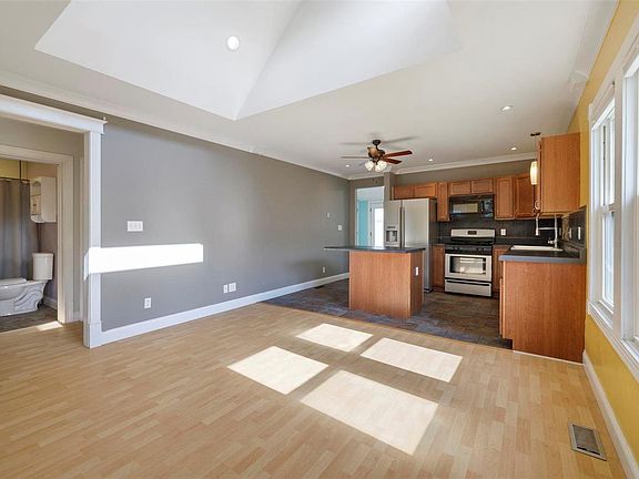 WELCOME HOME to this charming 2 Bedroom cottage in the heart of DeSoto. It is close to shopping, restaurants, and within walking distance of schools, ball fields, and a park. Inside is an open floor plan with plenty of sunshine from all the windows and beautiful skylight. The kitchen features custom cabinetry, stainless appliances, and an island with seating space. The open living area is big enough for a dining table and full size couch set. There are 2 large bedrooms with a full bathroom between them. Master closet features a built in organization unit and there is a convenient main floor laundry room. The full basement has tons of storage space. Outside you can sit on the cozy covered front porch or take a walk around the large level yard to the back patio with plenty of entertainment space. Also out back is the alley way that leads to the detached garage. Parking pad in front of the house for off street parking. This house is a must see!