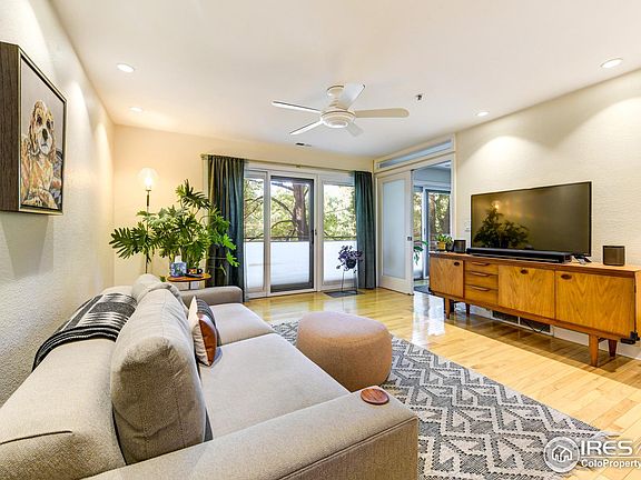 Premium finishes and exceptional value, this stunning second-floor sanctuary offers sweeping, unobstructed views of the Flatirons, nestled across from a serene park with a peaceful pond and easy access to iconic Boulder landmarks like Eben G. Fine Park and the Mt. Sanita's Trailhead. Inside, the layout has been thoughtfully redesigned to maximize natural light and create a more open, flowing feel throughout the main living areas. The space seamlessly extends to a spacious wraparound patio-ideal for indoor-outdoor living and entertaining. The light-filled living room features transom windows and sliding glass doors, while the kitchen boasts birch cabinetry, a two-drawer dishwasher, and a counter-depth refrigerator. Bathrooms include spa-inspired upgrades and a multi-function shower panel. The unit includes hardwood flooring, custom Elfa shelving, a wall safe, under-cabinet lighting, and so many unique features compared to other units in the community. There are two bedrooms, one of which features a hallway that doubles as a spacious walk-in closet. The unit also includes one carport close by and a private, oversized storage room just under the stairs. Live steps from Boulder Creek, trails, Pearl Street, and everything downtown has to offer! NOTE: HOA fee increased due to plans to replace and repair concrete around the complex. Seller has offered numerous rate buy downs. Please inquire with agent!AGENTS: Ask about a buyers agent bonus if sale closes by Nov 14th!