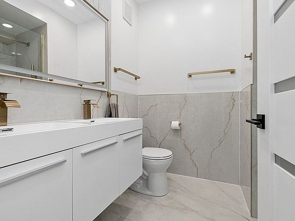 Gorgeous and modern 2 bedroom 2 bathroom main level condo in Asbury Woods features open concept with a bright living room, kitchen with breakfast bar, white cabinetry, quartz counter tops, and stainless steel appliances. Master bedroom has master bath has soaking tub, separate walk in shower dual sinks and walk in closet, second good sized bedroom and second shared bathroom with dual sinks and walk in shower. In unit laundry. 2 car garage.