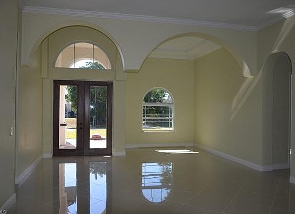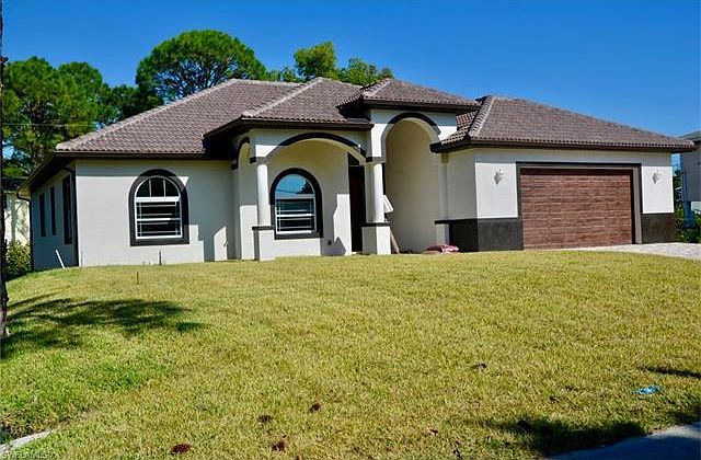 Don't miss the opportunity to own this newly constructed 3 bedroom 2 bath split floor plan with just over 2200 square feet of living space. This custom home has been tastefully designed with upscale finishes. Enter the single pane glass double-door entry into this expansive floor plan with diagonally laid upgraded tile throughout. Both the foyer and dining area have decorative arches. The large great room has double tray ceiling accented with crown molding and recessed can lighting. This gourmet kitchen has double oven, in-counter range with stainless steel hood, custom soft close cabinets with built in wine rack, all accented with beautiful granite counters and back splash, and crown molding. The master bedroom has his and her closets and french doors leading to spacious lanai. The gorgeous master bath is beautifully appointed with dual sinks, jetted soaking tub, walk around shower with multiple shower heads, frameless glass doors, and accented with ceiling high tile with custom inlay. The guest bedrooms share a bath located between the two rooms. The in residence laundry room has custom cabinets and laundry sink for added convenience. Contact your agent for showings!