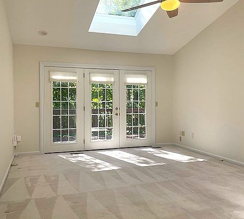 Beautifully updated ranch-style townhouse featuring a finished walkout lower level and private, wooded views. Enjoy the outdoors from the expansive deck or the lower-level patio. Freshly painted throughout with new lighting & ceiling fans for a modern touch. Interior highlights include vaulted ceilings, skylights, a cozy fireplace in the LL family room, and a wet bar perfect for entertaining.