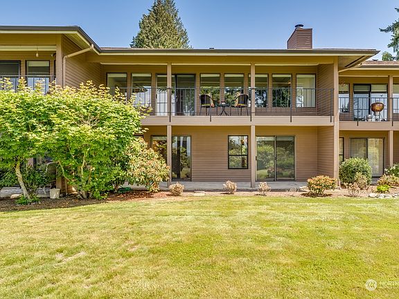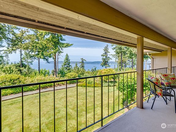 One of the largest view condos in View Point, desirable gated community, perched above Puget Sound. Western facing, unobstructed captivating sunsets, overlooking glistening Sound Waters, with endless backdrop of Olympic Mountains & Islands. Spacious, sunlit areas, windows illuminate the gracious flow of living, dining & kitchen areas with brilliant hardwood floors. Covered private outdoor view deck on main level to entertain & explore nature at its finest. Eye-catching views continue from the lower level which hosts 2 primary suites w/attached baths & walk out private patios and grassy area, capturing peaceful & serene surroundings. Storage galore, some areas with complete cedar lining drawers and cabinets. Trails, pool, & RV/boat parking!