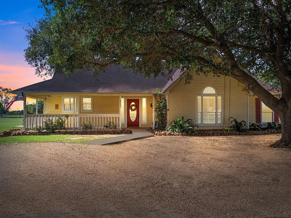 Check out this fabulous acreage property located at 8122 Blase Rd and zoned to Needville ISD. This property has 4+/- acres, TREES, 3 bed/2 bath main house, 2 bed/2 bath Guesthouse, Horse Barn, fenced, several outbuildings, and to top it off...a Sparkling pool & spa! The main house interior features include: gleaming laminate wood floors, spacious living and breakfast room both overlooking the pool/spa and views of the land in back. In addition, the kitchen has gas stove, built in microwave, dishwasher, ample cabinet and counter space, generous sized bedrooms with the primary bath having a separate tub and shower. The land in back allows you plenty of room to enjoy outdoor activities such as relax by the pool, grow your own garden, raise your own chickens/animals, or bring your horses. The barn is well equipped with 4 stalls, and a workshop area (could turn into stalls). The Guesthouse is great for guests, or additional family members and has a fenced yard with an outdoor deck.