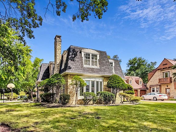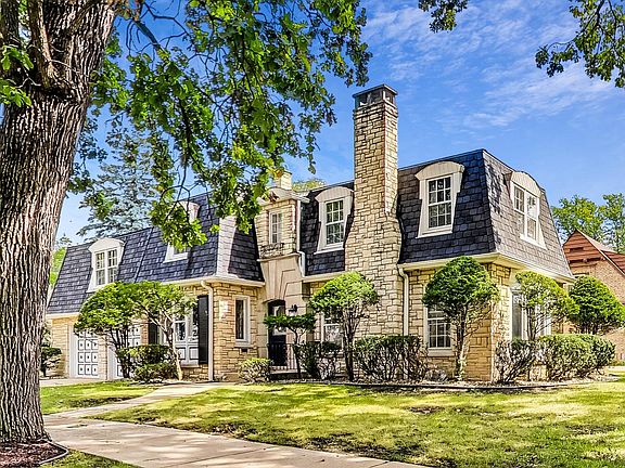 Available for the first time in over forty years! This mansard-roofed, five bedroom, brick home has been meticulously well-maintained. On the first floor, the massive living room features a stately stone fireplace, bay windows, and custom built-ins. The kitchen provides enough space for cooking and socializing, with an eat-in area and plentiful cabinets. There is a large three-season room off the kitchen that leads out to a paved patio. A first floor bedroom, with original stained glass windows and custom built-ins, can easily multi-purpose as an in-law suite, guest bedroom, office, or playroom. Upstairs contains four large bedrooms. The primary bedroom is oversized with natural wood finishes and large closets. The additional upstairs bedrooms are large and one features a massive walk-in closet. The basement is an entertainer's dream! A high-end bar seats seven and features a vintage stainless steel three-bowl sink. The large, stone fireplace, custom woodwork, vintage light fixtures, and custom booth seats, all combine to create a timeless atmosphere for relaxing and playing. The oversized, attached two car garage leaves room for parking vehicles and extra storage options. All home systems and maintenance have been meticulously maintained (with records provided at request!) for over forty years. The large corner lot, with mature trees & patio in back, is perfect for play, gardening, relaxing, or entertaining. Conveniently located on North Riverside's southernmost street, this hidden neighborhood enclave is the area's best kept secret within the award-winning Riverside school district (Central and Ames Elementary Schools, LJ Hauser Junior High, Riverside Brookfield HS) with lower North Riverside taxes! Located only one block from extensive National Grovelands where opportunities to hike, birdwatch, and enjoy nature are ever-present. Only 12 miles from Chicago's Loop with easy access to shopping, schools, parks, forest preserves, hospitals, Metra train stations & highways.