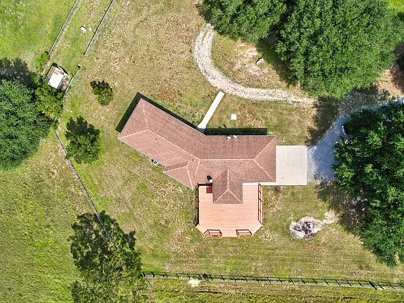 39 Acres of farmland to make your own! There are 5 cross-fenced, cleared, pastures (all with their own water source!), a turn out pen, and approx.17 acres of wooded land. There are horse trails within the woods. Horses were previously boarded on the property. There is a 4 stall barn with tack room. The tack room has fresh paint, kitchenette, and full bathroom. There is a 40' x 60' metal workshop, with electricity and water, to store all your outdoor toys and still have room for all your hobbies! There is one exterior door, roll up garage door, and 1/2 bath inside the shop. There are 2 FULL RV hookups (one on each side of the shop); complete with electricity (one 30 amp the other 50 amp), sewer, and water. The house on the property has a beautiful open floor plan, with fresh paint, all new matching fans, LVP flooring and LED lighting throughout. The kitchen has newer shaker style two tone cabinets, granite counters, breakfast bar, exterior hood vent, new refrigerator, and new stove/oven. The master bedroom has two large separate closets and a sitting area. All bathrooms have new vanities and toilets. There is a basement that has been finished off and can be used as an additional bedroom or a bonus/flex room. The attached garage is an oversized two car garage. Out the back door is screened in porch (that was recently reframed and rescreened) and a 40' x 20' deck overlooking the expansive pastures, with mature trees (crepe myrtles, live oaks, black walnut trees, and pecan trees). A new orchard was planted in the front pasture which features 2 peach trees, 1 pear tree, 2 plum trees, 8 apple trees, and 1 orange tree. HVAC 2018/2015, HWH 2021, Roof 2011