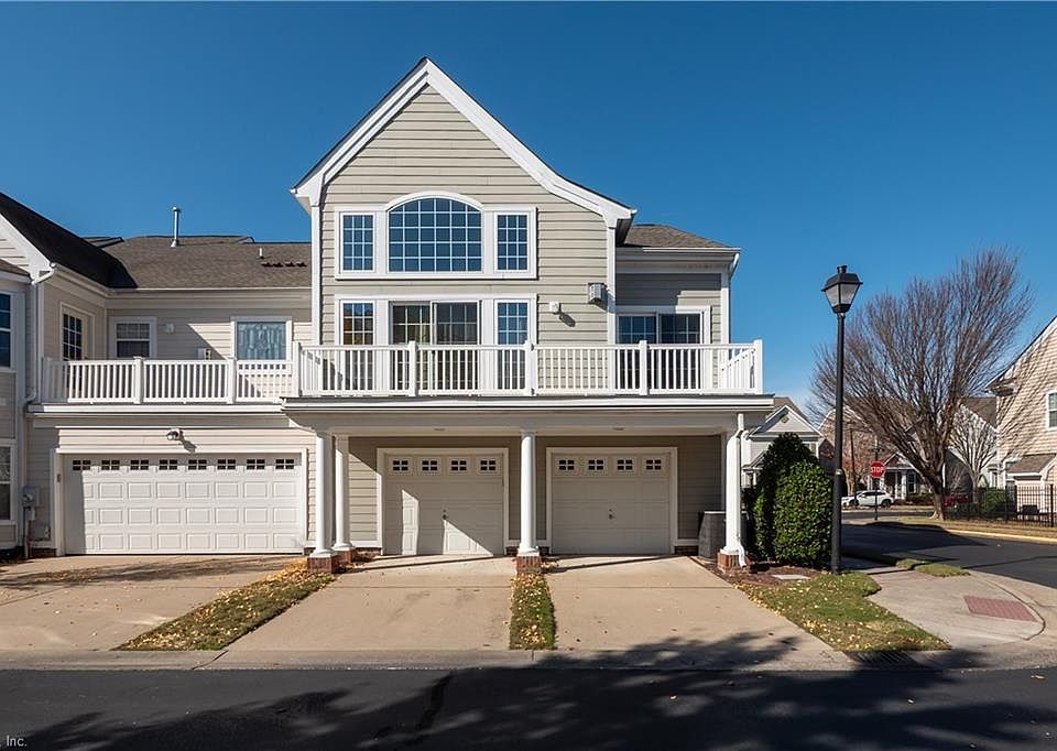 Beautifully kept townhouse style condo freshly painted throughout. Large open floor plan on main living level with vaulted ceilings in living room and French Style doors to great balcony. Well laid out kitchen with tile floors and open to breakfast area with a bay window. Primary suite also on main living level with large bathroom that has double sinks, soaking tub and walk-in shower. Additional half bathroom on this level. First living level boasts oversized two car garage, full bathroom and two bedrooms. Third floor loft is 4th bedroom with double closets and full bathroom. This home is conveniently located off the Western Freeway- close to Norfolk, Chesapeake and Portsmouth.