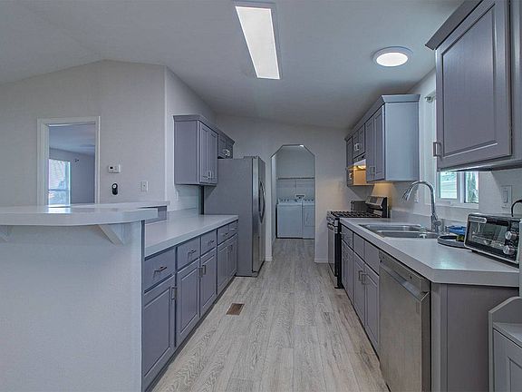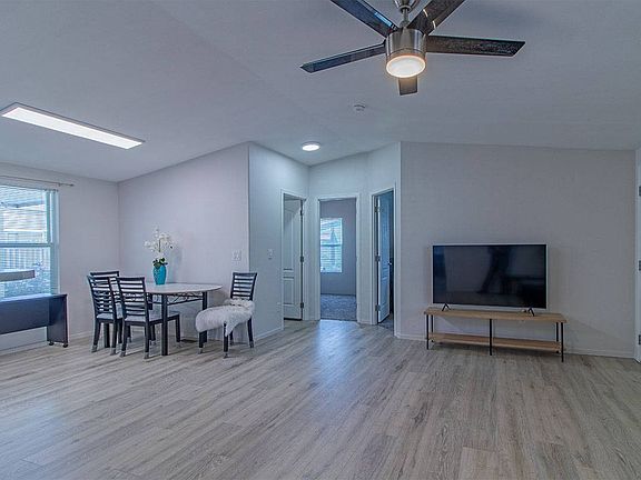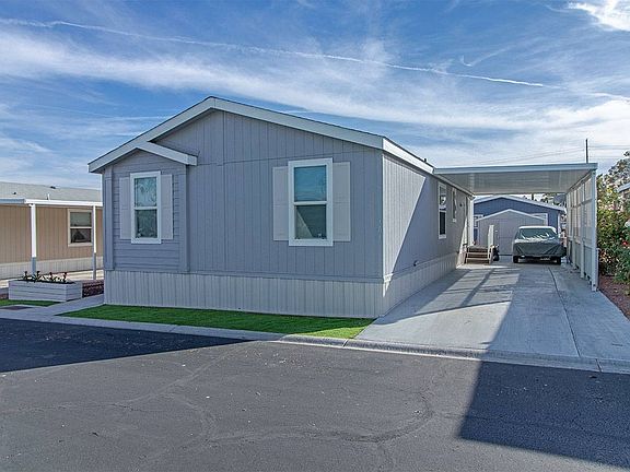 Looking for a 55+ manufactured home for sale in Las Vegas, NV? This move-in ready 2012 3-bedroom, 2-bathroom home is located in the popular, gated land lease manufactured home community, at 8122 W. Flamingo Rd., Las Vegas, NV 89147. Enjoy low-maintenance landscaping, a covered and enclosed front deck, a shed at the end of the driveway, and covered parking for three vehicles. Extra guest parking is nearby for convenience. Inside, you'll find an open-concept great room with vaulted ceilings and tape-and-textured drywall. The split-floor plan offers privacy with guest bedrooms at one end and the primary suite at the other. Recent upgrades include: NEW Appliances NEW interior and exterior paint Upgraded, lighting, ceiling fans, and faucets Factory-installed overhead lighting throughout The kitchen features plenty of cabinet space, abundant counters, and includes all appliances, plus washer and dryer in a separate laundry room. The primary bedroom fits a king-size bed and includes a large walk-in shower, sliding glass doors, and spacious vanity. Both guest bedrooms accommodate queen-size sets. Residents of this 55+ gated community enjoy: - Gated entry and on-site management - Heated swimming pool and spa - Fitness center and clubhouse - Community social events and pet-friendly atmosphere - Convenient Las Vegas location near shopping, dining, and entertainment This home has been well-maintained and recently upgraded. It's the perfect blend of comfort, affordability, and convenience in one of Las Vegas's most desirable 55+ manufactured home communities.