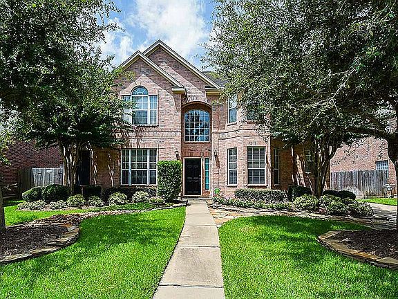 DID NOT FLOOD! Fab Partners in Building home in Copper Lakes. Great open floor plan with high ceilings thru-out. Formal dining, main living area, island kitchen w/breakfast rm, master & study with built in desk & shelving down. Huge gameroom, 3 secondary bedrooms (1 w/small hidden rm) & 2 full baths up. Corian counters, tile backsplash and stainless steel appliances in Kit. Master suite features granite vanities, whirlpool tub & separate shower Pool & spa w/mature tropical landscaping in back.
