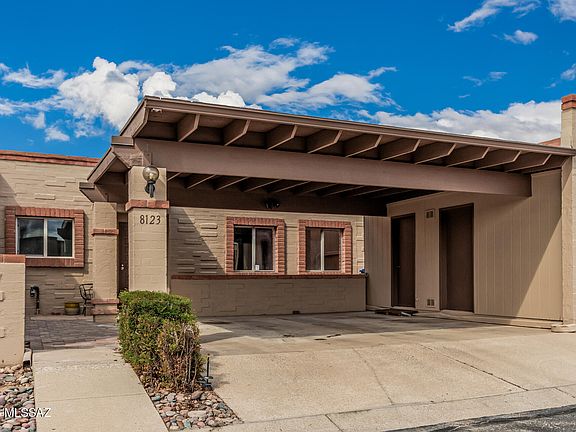 Welcome to this charming 3-bedroom condo tucked away on a quiet cul-de-sac in Tucson! Step inside to a freshly painted, bright living and dining area with soaring ceilings, skylights that fill the space with natural light, wood-look flooring, and a cozy fireplace for relaxing evenings. The kitchen features crisp white cabinetry with crown moulding, new appliances, and a pantry for ample storage. The spacious primary suite offers direct access to the backyard and an ensuite bath with a new vanity including dual sinks for everyday convenience. Outdoors, enjoy a low-maintenance paver patio--perfect for morning coffee, afternoon reading, or evening gatherings. With comfort, style, and a prime location, this Tucson gem is one you won't want to miss!