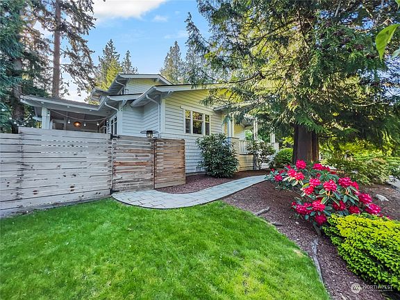 Fall in love with this immaculate craftsman home the moment you step onto the charming covered porch! Conveniently tucked down an idyllic lane & quality built by local builder Spellman Constr. You'll find meticulously maintained one level living w/ a rare primary on the main. Timeless light & bright open floor plan w/boxed ceilings, high-end chefs kitchen & darling built-in eating nook. Don't miss the custom pivot door to the additional first floor bedroom w/3/4 bath and its own private patio. Create your own happy memories relaxing with your favorite beverage on the private south-facing entertainment sized deck. Remarkably convenient in-town living, only minutes to Seattle ferry, serene woods & the Wing Point Golf community.