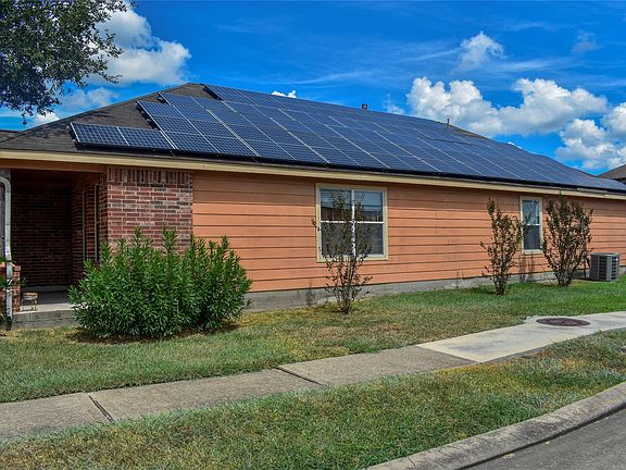 Welcome to 8123 Farthing Lane, a well-maintained 3-bedroom, 2-bathroom home in Southern Colony. This inviting single-story offers energy-saving features and thoughtful upgrades throughout. An open layout connects the living, dining, and kitchen areas in a seamless flow. The kitchen includes appliances, ample cabinetry, and a large breakfast bar. The primary suite comes with an en-suite bath and a full-entry closet. Secondary bedrooms provide flexible options for guests, hobbies, or remote work. Custom woodwork and built-in shelving add charm and remain with the home. Notable upgrades include a water softener, solar panels with Tesla backup battery, and recent roof repairs. Out back, enjoy a large yard with no rear neighbors and a custom-built doghouse. Conveniently located near SH-288 and Hwy 6, with easy access to Pearland, Missouri City, and the Texas Medical Center. Zoned to Fort Bend ISD. This move-in ready, energy-efficient home is a rare find—schedule your private showing today!