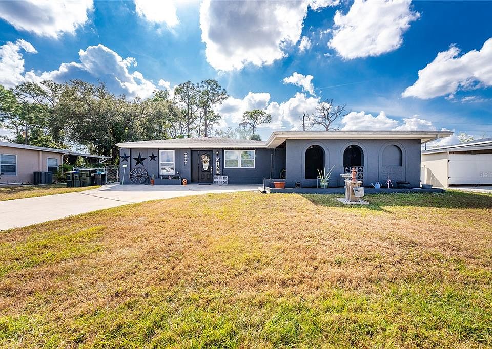 Welcome to this charming North Port home perfectly situated close to shopping, restaurants, churches, and doctor offices. The private backyard backs up to a neighboring church, offering peaceful surroundings and extra privacy. The main home features two comfortable bedrooms and one bathroom, and an adjoined IN-LAW SUITE provides an additional bedroom and full bathroom, making it ideal for guests, extended family, or multigenerational living. Outside, the fenced backyard includes two separate sections to keep pets apart as needed, along with two storage sheds for added convenience. Enjoy the enclosed lanai, the covered carport, and the peace of mind that comes with a NEW ROOF installed in December 2025. This home offers flexibility, comfort, and a fantastic location.