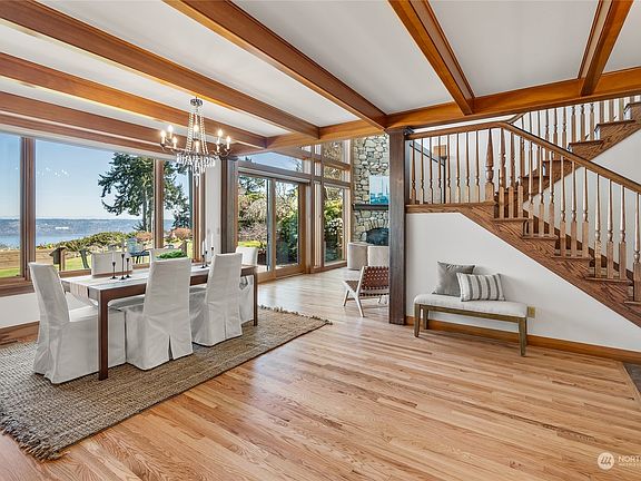 Misty morning views across the Sound. Bald eagles gliding by at eye-level, set against the Mukilteo ferry and snow-capped Cascade mountain peaks beyond. Serenity and awe are ever-present on Possession Ridge Lane just by turning your gaze to the east. Completely remodeled in 2005, this home's every detail, from artful wood beams supporting soaring ceilings, to towering windows spanning the entire flowing floorplan, was chosen with love. This estate features stunning custom kitchen with gas appliances and double oven, main level primary bedroom, and garage parking for 7 vehicles (including RV). Additional 1232 sq ft guest house gives visitors independence, or rent out for extra income. The idyllic spot to make real your island life fantasies.
