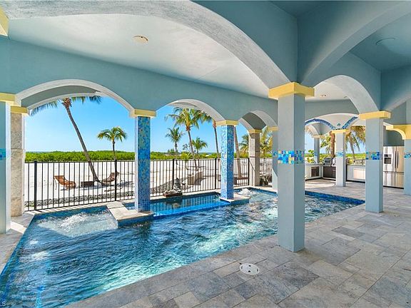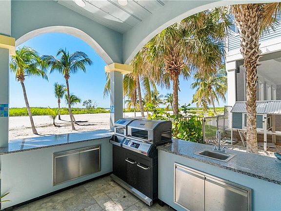 Beautifully renovated direct beachfront home on South Estero Island with breathtaking Gulf views! Sits on a rare stretch of beach with an ultra-private backyard with no passersby to be seen, providing optimal privacy. This 4 bed/4.5 coastal delight has been completely remodeled and features a NEW METAL ROOF, Generac whole house generator (2021), 2 new HVACS (2020), new instant water heater (2020), hurricane impact windows/sliders throughout, and new interior staircase. Step outside onto your open-air wraparound balcony and enjoy endless views of the turquoise waters of the Gulf of Mexico. Stunning chef’s kitchen contributes to the wide-open floor plan and offers custom-built white cabinetry, gorgeous white quartz countertops, waterfall island, walk-in pantry, and new high-end Jenn-Air appliances (2020) including double ovens and induction cooktop. The spacious primary bedroom is a tranquil haven with floor to ceiling windows/slider to fully indulge in the Gulf views and has a spa-like bath with dual vanities, large jetted soaking tub, and separate walk-in shower with multiple shower heads. The top floor is perfect for a private guest wing or an extra bonus room with an ensuite bathroom and top floor sun deck for picture-perfect sunsets over the Gulf. Just steps from the beach, your outdoor oasis awaits — featuring a fenced-in heated saltwater pool and spa, along with a brand-new summer kitchen ideal for poolside dining and sunset entertaining. Other features include a Lutron lighting system, Savant sound system upstairs, tile flooring, and coffered ceiling details. This is a fantastic vacation home or investment opportunity located in a weekly rental zone allowing for maximum rental income if desired! Perfectly situated on the coveted South-end of Estero Island near Lovers Key, Bonita Beach & the South bridge to the mainland with dining and shopping walking distance.