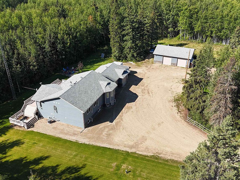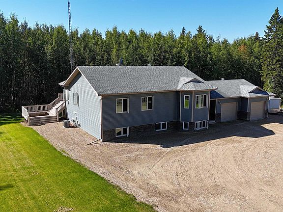 Executive Estate Living on 4 Private Acres! Thoughtfully designed & impeccably finished, this 1,900+sq ft bilevel offers elevated living on all levels! As you enter the home through the magnificent entrance, an immediate sense of "wow" will hit you. A stunning chef’s style kitchen outfitted with premium SS appliances, granite countertops, custom cabinetry, & access to the expansive rear deck,ideal for indoor-outdoor entertaining. A grand living room anchored by a floor-to-ceiling stone gas fireplace, rich hardwood flooring, & a large bay window that floods the space w/ natural light! W/ 3 large bedrooms, including a spectacular primary suite featuring a spa-like 5-pce ensuite w/an air tub, walk in closet, & direct deck access through the patio doors. A 4-pce & 2-pce bath complete this level. 4 more bedrooms offer flexibility for family & guests, + a home theatre room, perfect for movie night! Offering total privacy this land includes a 30x40 heated shop, 28x29 garage, Central AC, even room for a hottub!