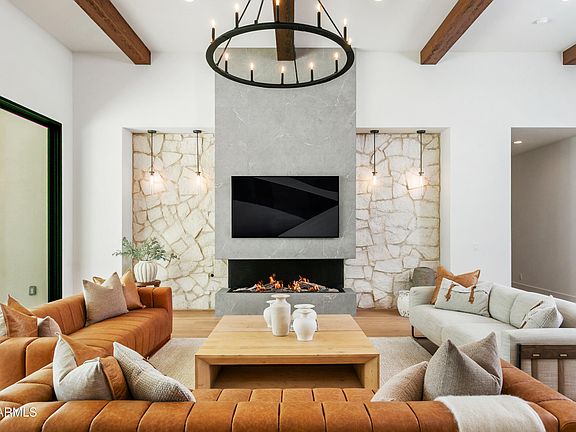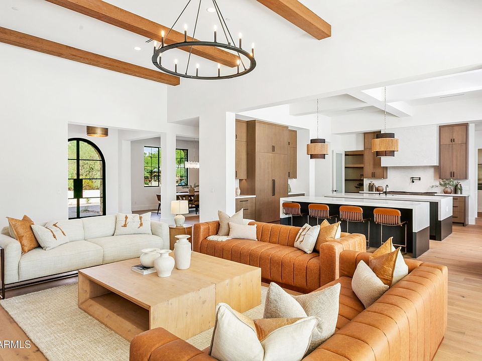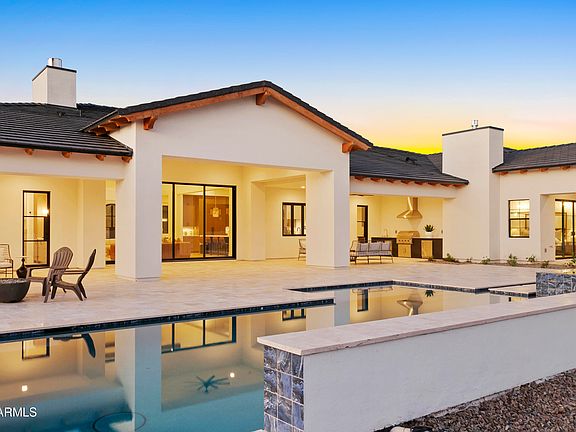 Traditional elegance meets modern design in this stunning new build by Richter Homes. Set on a full acre in a prime Scottsdale location, this 6,000 SF residence offers 5 beds, 5.5 baths, plus a game room with a bar. Thoughtfully designed layout with bespoke finishes creates ideal spaces for entertaining and everyday living. The great room boasts 14' ceilings, a sleek fireplace, and retractable doors opening to the pool. The chef's kitchen features a 60'' Wolf range, Sub-Zero appliances, flat panel rift-oak cabinetry, and an accordion passthrough to the outdoor kitchen. The primary suite includes a fireplace, two person steam shower, custom closet, and hidden safe room. Large secondary suites and a junior master for ultimate comfort for your guests. Backyard designed for Arizona living: custom pool/spa by Presidential Pools, full outdoor kitchen, fire pits, large grass area, and extra space for a sport court or RV garage. Oversized 4 car garage with plenty of extra space on the expansive driveway. Just minutes from Kierland, Scottsdale Quarter, Scottsdale airport, and the 101 freeway.