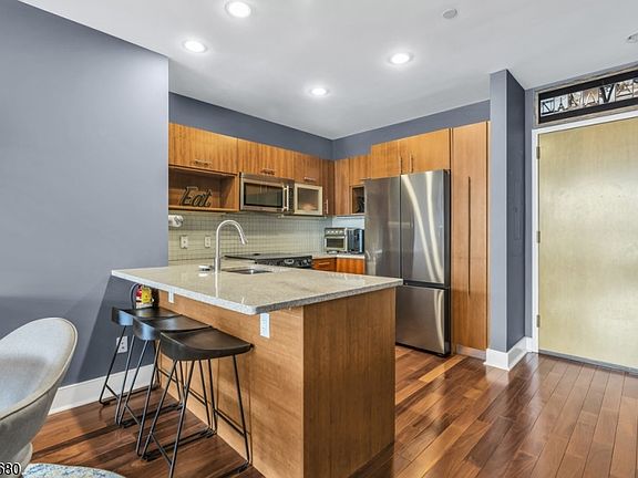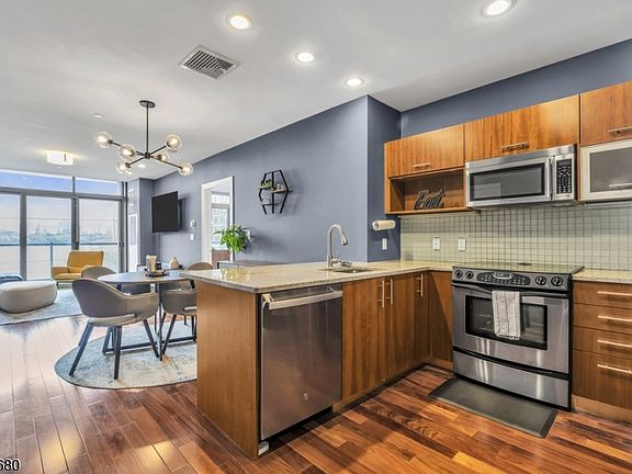 Discover luxurious waterfront living at the boutique Mirabelle on the Hudson. This beautifully maintained 2-bed, 2-bath condominium offers dramatic, unobstructed views of the Hudson River from a bright, open-concept living/dining area that flows seamlessly into a modern kitchen.The kitchen features upgraded appliances including a brand-new refrigerator with beverage center and a new dishwasher. Enjoy modern convenience with automatic blinds, a smart-home thermostat, and built-in cable-management for a clean, polished space.Retreat to the spacious primary suite with its own balcony access and en-suite bath. A generous second bedroom offers flexibility for guests, a home office, or hobby space. Recent major upgrades include two new HVAC units and water heater, so you're set for comfort and efficiency.Step out to private outdoor living balcony access from both the living room and the primary bedroom let you soak in sunrises or evening skyline views. The building enhances your everyday with amenities like a doorman, fitness center, and two dedicated parking spots (rare to find).Ideally located just minutes from North Hudson County Park, a rich selection of local restaurants and shopping options, and a variety of mass-transit options including the bus to Port Authority, the Hoboken train, and the Port Imperial ferry.Don't miss the chance to call this waterfront gem your home schedule your private showing today