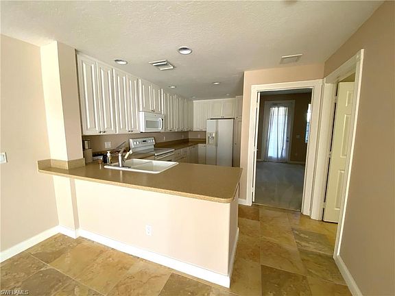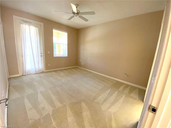 Awaiting new owners is this original DiVosta built, poured concrete, three bedroom/three full bath two story Cayman townhouse. This home has been recently painted in neutral shades and has a mix of tile and carpet flooring. One bedroom with an attached bath and private entrance is located on the first floor and can also be used as a den or home office. The second-floor hosts two master suites and a separate laundry room. There is ample room indoors, but in addition, a screen enclosed patio and two car garage are at the back of the home. All that is needed is a new resident to add their personal style to this clean slate of a property. There are miles of connecting walkways to bicycle, dog walk or just stroll past the many lakes. Sports such as tennis, pickle ball, a full fitness center and much more are available for your enjoyment. Verona Walk has a full-time activities director who keeps the residents' entertainment choices fully packed. The community has at its center a cafe, hair salon, real estate agency and post office. Verona Walk is true resort style living at its best.