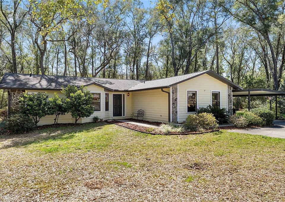 Welcome to this charming home nestled in the serene beauty of coveted Kanapaha Pines! This captivating three-bedroom, two-bathroom property spans over one lush acre and promises a haven for nature lovers. Imagine waking up to the majestic sights of bald eagles soaring overhead, foxes gracefully exploring, and deer grazing—all just steps from your doorstep. As you step onto the property, you'll immediately notice the tranquil wooded property. The landscape is adorned with a fig tree and other beautiful plants - there's always something blooming! Embrace sustainable living with the convenience of a septic and well system, ensuring no water or wastewater bills. This home comes equipped with modern conveniences, including a Nest thermostat, smart fire alarm, and carbon monoxide detectors for added safety and peace of mind. Imagine effortlessly controlling your home's climate and security from the palm of your hand. Step into the sunroom, a delightful space that bathes in natural light, creating the perfect spot for relaxation or entertaining. In the kitchen, the refrigerator and dishwasher were updated in 2021. The bonus room is a versatile space, offering endless possibilities for a home office, gym, or even a cozy reading nook. Let your imagination run wild as you personalize this extra space to suit your lifestyle. The property comes complete with yard tools and a riding lawn mower, ensuring that maintaining your acre of paradise is a breeze. Don't miss the chance to make this property in Southwest Gainesville your own—where every day feels like a retreat and wildlife becomes your closest neighbor. Contact us now to schedule your private tour and step into a world of comfort and the wonders of nature! Well pump replaced in 2023 for and has a 5 year transferrable warranty. Roof replaced in 2019. AC replaced in 2016 and heater in 2015. Washer and dryer purchased in 2022 convey with property.