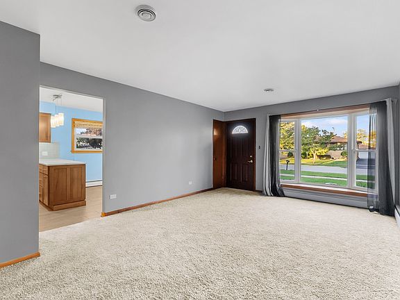 Welcome to Bridgeview! This charming 2-bedroom, 2-bath split-level home is move-in ready and filled with thoughtful updates. The freshly painted living room with brand-new carpet sets a warm and inviting tone, while the stylish kitchen shines with granite countertops, stainless steel appliances, updated cabinets, and modern lighting. A cheerful breakfast nook with a full pantry offers extra flexibility-perfect for dining, a home office, or even a potential third bedroom. Upstairs, you'll find two spacious bedrooms with new carpet and a beautifully updated full bath. The finished English basement adds even more living space with a cozy family room, another full bath, and a separate laundry area complete with washer and dryer. Step outside to enjoy summer evenings on the brick patio, a fenced backyard ideal for pets or play, and plenty of parking with a side driveway and oversized 2.5-car garage. This home truly has everything you need-comfort, style, and space to make it your own.