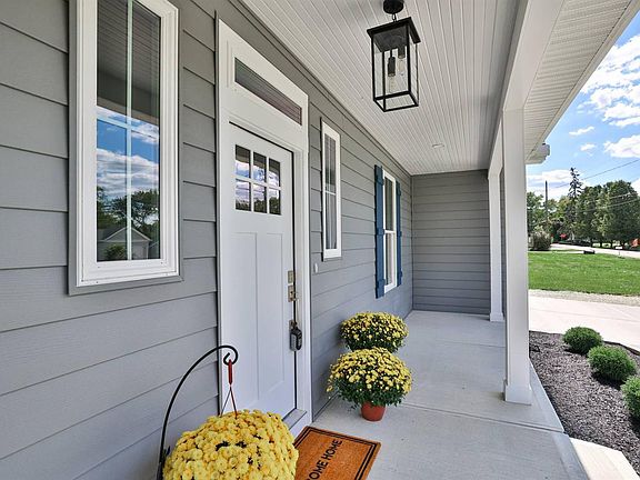 Do you love new construction but dread the building process? Then look at this 3 BR 2.5 baths farmhouse-inspired home including a 1st floor primary suite w/custom tile shower & walk-in closet! The open floor plan showcases a stunning white kitchen w/quartz countertops island & backsplash stainless appliances including a 5-burner gas stove & a vented stainless chimney range hood. Luxury vinyl plank flooring flows from the kitchen thru the dining area into the great room - w/a modern gas fireplace - & into the hallways & laundry room. Upstairs you will find 2 BR w/upgraded carpeting & a sunny loft w/skylight. Be sure to show your buyers the attic space hidden behind the bookcase in the loft. Zoned heating Pella vinyl windows foam attic insulation & insulated vinyl siding ensure energy efficiency. Full walk-out basement w/rough-in for a bath - ready to finish! Relax on the covered front or back porch & enjoy the convenience of a two-car garage w/a double wide concrete driveway. No HOA.