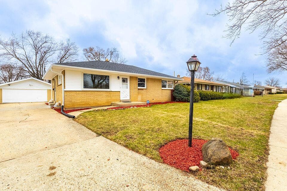 Beautifully updated 4-bedroom ranch located on a quiet street. This move-in-ready home features a brand-new tear-off roof on home and garage, mostly newer windows, and refinished original hardwood floors in the living room and bedrooms. The fully remodeled kitchen includes new flooring, updated cabinets and granite countertops, and comes with a refrigerator and range. The bathroom has also been completely renovated with stylish flooring and new fixtures. The finished basement offers a spacious rec room and a custom brick built-in bar--perfect for entertaining. Outside, enjoy a large, low-maintenance yard and a 2.5-car garage providing ample storage and parking. A perfect blend of charm and modern updates--schedule your showing today!