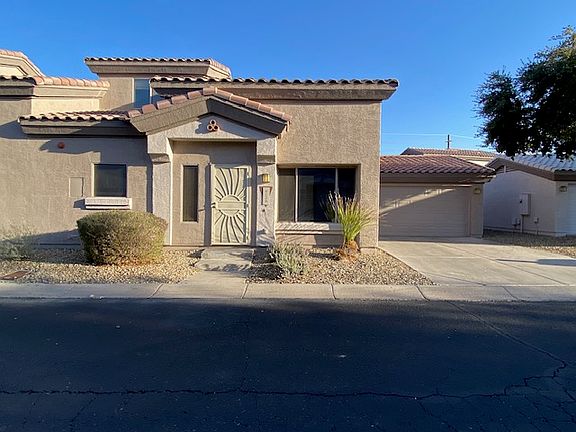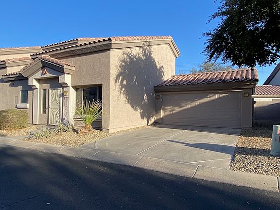 3 bedroom 2.5 bathroom is in gated community with community pool. Brand new paint March 2025. Parking is restricted due to limited visitor parking and HOA rules. This two story home offers vaulted ceilings, tile and wood flooring throughout. Master bedroom on 1st floor. Half bath on first floor accommodates guests and family. Backyard has covered patio that is easy maintenance. 2 car garage. Property has community pool with private bathrooms and a rec room to use. Close to greenbelt and walking distance to Paseo Verde school and Park. Near 101, shopping, dining, Peoria sports complex, Rio Vista park, walking trails. Once you have viewed and fallen in love with this property the application is free to complete. We do require a couple of documents up front for the pre-approval process. If the landlord chooses to move forward that is when we charge for the background check. Please contact us about the pet policy.
