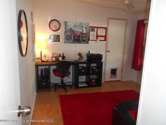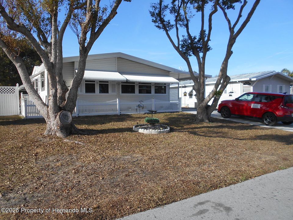 Welcome home friends! This is a 1992 Palm Harbor 2 bedrooms and 2 full bathrooms has all the right upgrades you need. It has a den with french doors that open into the kitchen, that could become a 3rd bedroom if needed. Kitchen has been redone from top to bottom. New cabinets and appliances. New windows in 2018,new screen porch 2019, newer roof in 2021 and the a/c is 2018. The guest bathroom has been fully redone with a stand up shower and new skylight. Master is large and the bathroom has a garden tub along with a stand up shower and toilet with a door. Has high counter tops Has ceiling fans through out the home. Inside laundry. Nice oversized workshop with workbench. Don't wait and come and enjoy the sun in a 55+community where you own your own land.