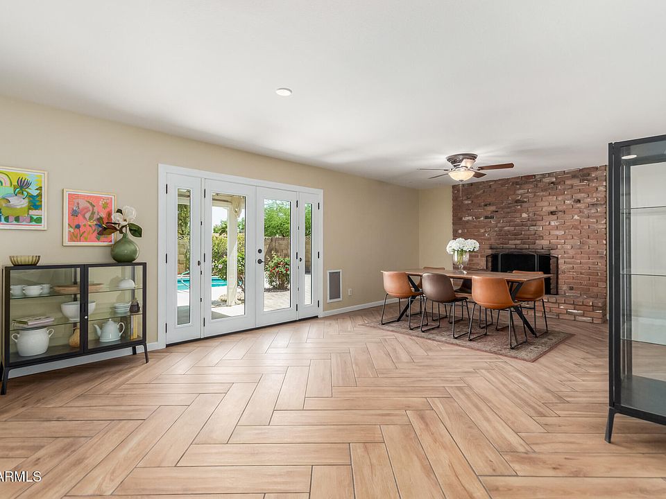 This 3 Bedroom/2 Bath Home with 2 Car Garage,has Updated Bathrooms,Tiled Floors Completed in 2023,New Pool Pump in 2022,New Windows in 2024*The Family Room has a Beautiful Brick Fireplace and French Doors that Lead out to a Shady Covered Patio,Sparkling Pool and EZ Care