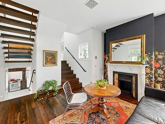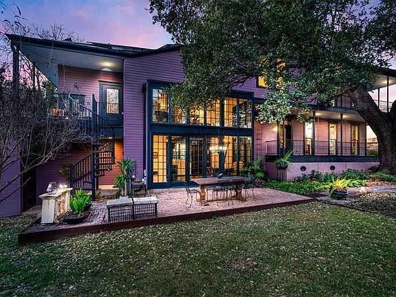 Discover a one-of-a-kind residence at 813 1/2 E 13th St, where French Quarter-inspired charm meets modern Austin living. This custom-built 3-bedroom, 2.5-bath home in the historic Swede Hill neighborhood boasts timeless elegance with its double galley front porch, adorned by Bevelo French Quarter gas lanterns and intricate wrought iron railings. Step inside to find interiors thoughtfully curated with reclaimed materials and artistry throughout. Original 100-year-old long-leaf pine floors anchor the space, while bold House of Hackney wall coverings and a decorative fireplace bring a unique blend of history and style. The main level invites you to a two-story, conservatory-style kitchen and dining area with abundant storage and a functional yet stunning open-concept design. Featuring custom wood cabinetry, a white brick backsplash, and a library ladder, this kitchen is a chef's dream. A hidden laundry room and a versatile office space add to the functionality. Ascend the floating stairs to the upper level, where a loft area leads to two exquisite bedroom suites. The primary suite exudes sophistication with glass-detailed bar doors, Restoration Hardware bath furnishings, and a walk-in shower, while the secondary suite captivates with a hand-burnished Penhaglion clawfoot tub, a private balcony, and its own spiral staircase entrance. Outdoors, the lush landscaped courtyard beckons with heritage live oaks featuring a cowboy pool perfect for laid-back lounging or creative inspiration under the Texas sun. Eco-friendly features include solar panels, an electric car charger, rainwater collection, and Milgard fiberglass windows for optimal energy efficiency. Ideally located, this home is within walking distance to downtown Austin, Waterloo Park, Moody Amphitheater, UT Dell Medical School, the State Capitol, and local dining.