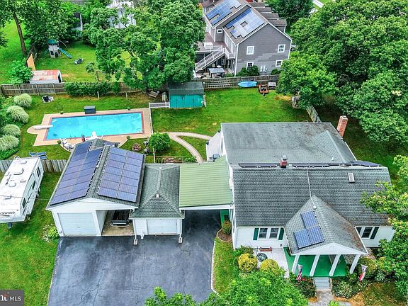 This expanded Cape Cod is nestled on a private, level .81-acre lot in Gambrills and offers the perfect blend of privacy, functionality, and resort-style living. Thoughtfully updated throughout, the home showcases a fully renovated 18x40 in-ground pool, refreshed finishes, and exceptional vehicle storage for all your toys, hobbies, and guests—making it an ideal retreat both inside and out. Inside, you’ll find three main-level bedrooms, including a spacious owner’s suite with French doors to the sunroom and patio doors that open directly to the rear deck and backyard oasis—ideal for morning coffee or seamless access to the pool. The owner’s suite also includes a dedicated mini split system (2015) for personalized comfort. The home offers two full bathrooms, a large kitchen, a separate dining room, and a main-level office. Upstairs, a fourth bedroom and versatile loft area provide flexible space for a guest suite, playroom, creative studio, or private retreat. Recent upgrades include new stainless steel appliances, new carpet, and refinished hardwood floors, creating a fresh and inviting living environment. Fully electric and equipped with solar panels, this home delivers outstanding energy efficiency and long-term savings. It’s powered by a Trane 3-ton heat pump and air handler (2016, 18 SEER) and protected by an architectural shingle roof (2013) with a transferable warranty. The septic system was pumped and certified in June 2025. Best of all—there’s no HOA. Outdoors, enjoy your fenced backyard retreat featuring a poolside patio, storage shed, and extensive vehicle accommodations: an oversized 12x32 RV garage, a 14x25 garage, two carports, and generous off-street parking. Brand-new gutters and soffits, installed in 2024, come with a lifetime transferable warranty on both labor and materials, offering added value and long-term peace of mind. With its rare combination of indoor comfort, outdoor enjoyment, energy efficiency, and flexible living space, this one-of-a-kind Gambrills property is ready to impress. Schedule your private showing today and explore the possibilities this remarkable home has to offer!