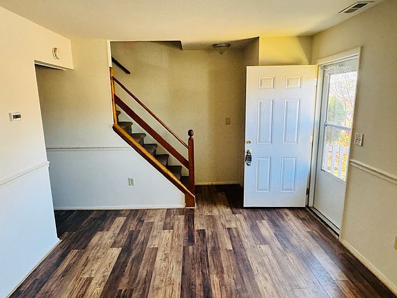 This property is a two story townhouse with 3 bedrooms and 1.5 baths. It is located at 813 Anvil Road, Fredericksburg, VA 22405, in the Olde Forge townhome subdivision. This property is located in the back, which is quiet and has less traffic, and less than a mile away from interstate 95. This property has been fully remodeled, which includes a renovated upstairs full bath, with all new tile, tub, vanity, etc. Wood floors run throughout the whole property. You walk into a living room, and moving into the next area a half bath and laundry. There is an eat in kitchen, with plenty of storage space, and leads out to a fenced in back yard. Upstairs, there is a large primary bedroom at the head of the house, with a walk in closet, and two bedrooms, with the new bathroom. This home is remodeled, located right off interstate 95, with great schools close by, as well as shopping, etc. There is parking for two vehicles at the front of the property, and overflow parking as well. Neighbors are very nice, and many commute into Washington DC.