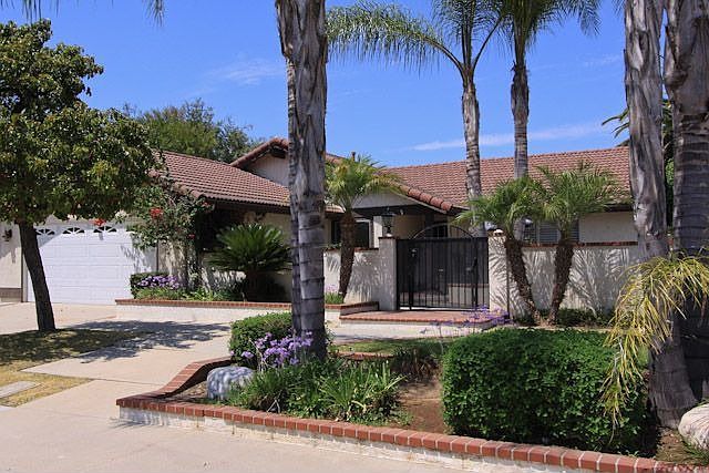 Standard Sale! Fantastic opportunity to own this former model home on a cul-de-sac! Features include private courtyard entry, freshly painted interior, open floor plan with vaulted ceilings, sparkling pool and spa. Enter the courtyard to a private patio area with views of the mountains, great for entertaining family and friends. Entry foyer leads to the spacious living room with high vaulted ceilings and wood shutters. A brick fireplace compliments the room. Open kitchen, family room and breakfast nook are light and bright. The family room and kitchen overlook the backyard with built in pool and spa. Center hall leads to 4 good sized bedrooms and 2 baths. The Master bedroom features 2 closets, separate dressing and vanity area and has sliders that lead to the backyard patio. Excellent location! Close to shopping, restaurants and schools. Call today!