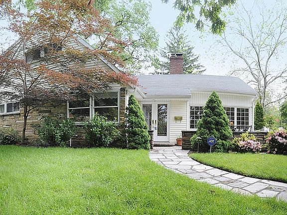 Beautiful home on large, lush property has everything you've been looking for. Open floor plan, perfect for entertaining. Walls of glass in living and dining rooms, fireplace, large eat-in kitchen with bay window. Generous bedrooms, lots of closet space. Paver patios front and back, gleaming hardwood floors, central air, in-ground sprinklers. All this and school bus stop right out front!