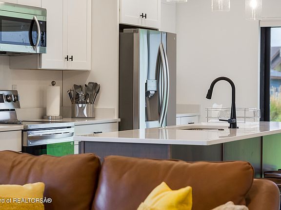 Completed in 2022, this 5-bedroom, 3-bath Shoshoni Plains twin home spans 2,580 square feet and features quality finishes throughout—including LG stainless steel appliances, alder cabinetry, quartz countertops, and durable LVP flooring on the upper level. The fenced backyard includes a hot tub, and furnishings are negotiable. Ideally situated for a full-time residence or a short-term rental, the home is within biking distance to downtown Driggs and just 20 minutes from Grand Targhee Resort. A must-see opportunity in a prime location.