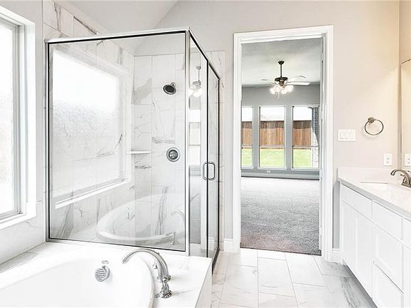 PERRY HOMES NEW CONSTRUCTION READY FOR MOVE-IN! Mahogany front door. Raised ceiling heights in entry and formal dining room. Open family room with wall of windows and cast stone fireplace. Kitchen features angled island and flows into morning area and family room. Master suite with garden tub, separate glass-enclosed shower, dual sinks and large walk-in closet. Large utility room. Abundant closet and storage space. Covered backyard patio. Two-car garage.