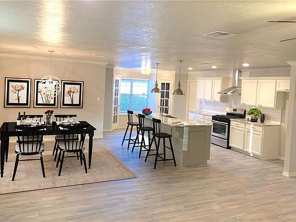 Absolutely stunning , open concept home complete renovation completed 2019. Home has many of buyers " Wish List Items" Spacious living room with fireplace, open to kitchen with large island, white cabinets , granite counters, gas stove , custom vent hood, new appliances and double pantry closets. Extra large laundry room with storage. 2 FULL bathrooms . Master has shiplap and an amazing en-suite with double vanities and large walk-in shower /glass shower door . NEW carpet in all bedrooms and new tile through out the balance of home. Tile is the wood look in shades of grey, beige and cream. Stylish light fixtures enhance the beautiful design. House is move -in ready . Large fenced backyard with trees , storage building , covered patio and storm shelter. Super quiet neighborhood with little traffic.