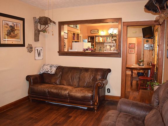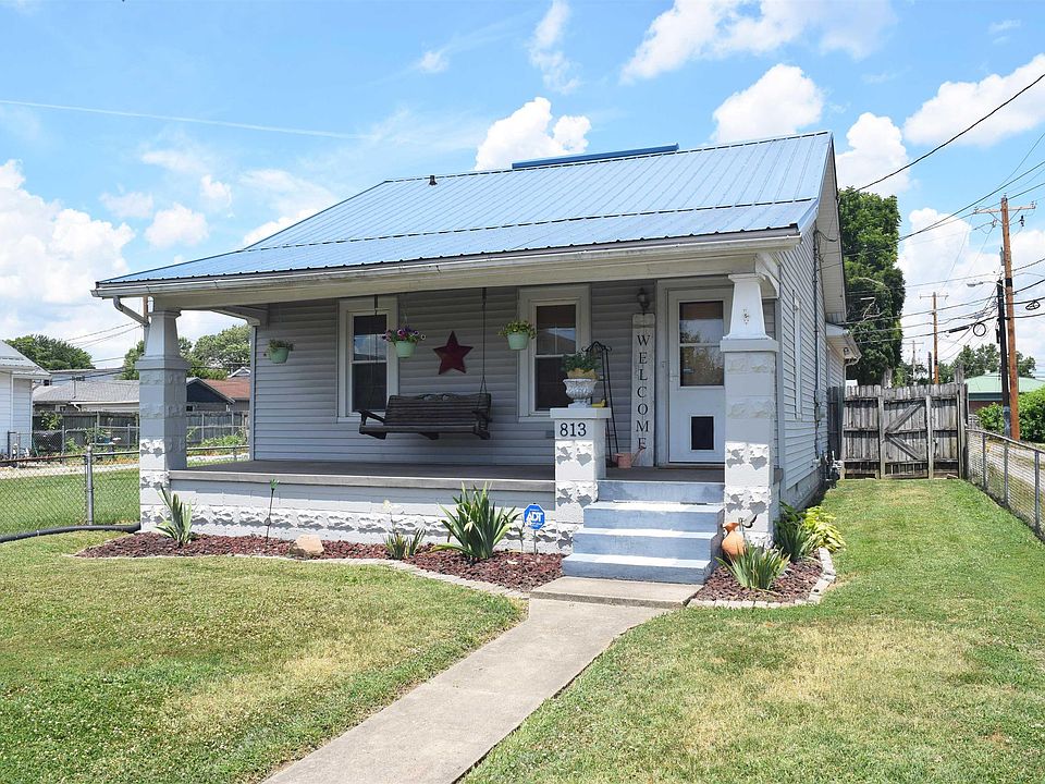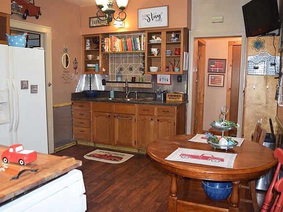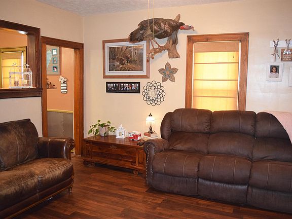 Hurry, this cutie is Back on the Market! Buyers unable to obtain financing. Lovingly cared for by the same owners for the last 34 years, this home has 2 Bedrooms PLUS a Bonus room with a Second full Bath that is currently being used as a beauty shop/laundry room. This would make a great Owners suite/3rd Bedroom! (Laundry could be moved back to the basement). The inviting covered front porch leads to the nice Living room that is open to the eat in kitchen. The two bedrooms share a full bath. All the living space features hard wood floors and natural woodwork. The quaint side yard area is great for a private barbeque. A portion of the 2 car garage for used for the back room addition but it will still hold a lot! In addition there is a large 12 x 20 carport and 12 x 8 storage shed. The partial basement is also great for storage! Fenced in yard. New metal roof and A/C in 2010 and windows in 2007. Sellers are providing a One year home warranty for Buyer. Immediate Possession! Don't miss this one!
