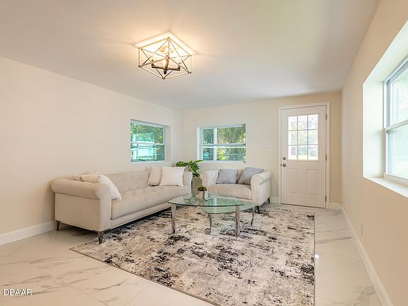 Beautifully Remodeled Home- Perfect for all buyers!— This FULLY RENOVATED 3-bedroom, 1-bathroom home boasts over 1,000 sq ft of move-in ready living! Enjoy cooking in the updated kitchen with White Shaker Cabinets, quartz countertops, stylish backsplash and stainless-steel appliances. This home is complemented by sleek ceramic tile floors, modern finishes throughout and a home vibe to fit your needs! Enjoy the Florida lifestyle year-round with a huge front screened-in patio perfect for relaxing or entertaining. Brand new windows, 2024 Roof and the 2019 AC unit, Updated electrical panel, 2019 plumbing and all new interior & exterior paint. Whether you're a first-time homebuyer, snowbird or investor looking for SHORT TERM rental or long term rental. amazing rental opportunity, this home checks all the boxes! This lot has tons of parking! Just distance to the renowned Pictona pickleball courts and Centennial Park & Lake Hadley. An easy drive to Riviera Golf Course 1.5 miles, under 2 miles to Publix, under 3 miles to the beach, under 5 to Daytona International Speedway and Tanger Outlets are 4.5 miles. All information recorded in the MLS is intended to be accurate but cannot be guaranteed.