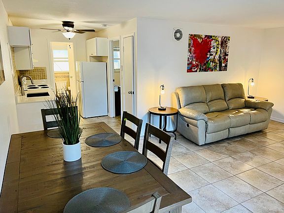 FULLY FURNISHED. Newly renovated ground floor one bedroom villa with king size bed!Nice big open layout, totally renovated with modern touches.Everything is brand new and spotless in this unit!Reclining leather sofa, pottery barn table and chairs, king Nectar high end mattress, new AC/Appliances and lots of cool pop art!Small 3 unit concrete block fenced in building 3-4 blocks to everything!We are the furthest East section of Sailboat Bend, you can't beat this location! We take pride in extreme cleanliness! Come enjoy a brand new unit for the season in sunny South Florida! Two parking spaces (tandem). Tenant pays electric through FPL. Water $100 & Wi-Fi $50.