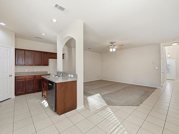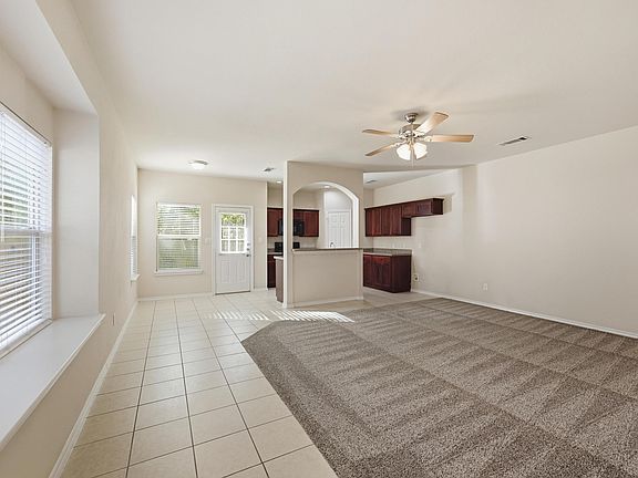Step inside to a bright and open layout where the dine-in kitchen flows seamlessly into the living room, creating a functional space perfect for both everyday living and entertaining. The kitchen features granite countertops, a convenient island, modern appliances, and window blinds. Tile flooring in the kitchen and bathrooms adds durability and easy maintenance.