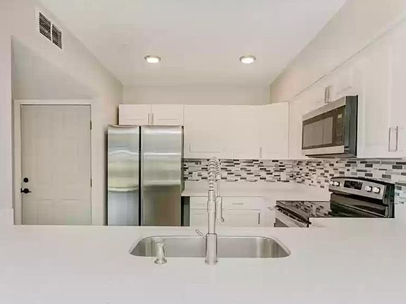 Fresh paintAbundance of natural lightBreakfast barGround floor unitQuartz countertopBeautiful oak treesLarge basin sink