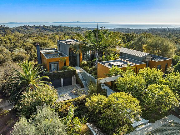 Set on 5.51 acres, this Montecito estate offers exceptional privacy, tranquility, and sweeping ocean, island, and mountain views. Designed by Jan Hochhauser with interiors by Barbara Hauben Ross, the 5-bed, 5.5-bath modern masterpiece seamlessly blends contemporary elegance with Montecito's signature indoor-outdoor lifestyle. Expansive glass walls capture the breathtaking surroundings, while the luxurious primary suite features a spa-like bath, private lounge, and mesmerizing views. Additional guest suites, a refined living room, and a handsome library complete the main level. Resort-like grounds include a tennis court, infinity pool, koi pond, fruit orchards, and a private well.