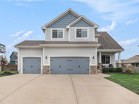 The open-concept layout continues into the breakfast nook, perfect for family meals or morning coffee, and the large kitchen, featuring beautiful dark cabinetry, stainless steel appliances, and plenty of counter space with a fresh, inviting feel. Off the kitchen, a convenient hallway offers a coat closet, a full bathroom, and access to the three-car garage.