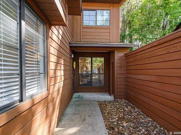 Move-in ready end unit in Rockwood Villas! This 2 bedroom, 2 bathroom townhome has a great layout and features a wood-burning, freestanding fireplace in the living room and an enclosed porch with an attached laundry/utility room. The upstairs bedroom includes an additional room that could be used as an office, flex space, or for extra storage. Community amenities include 2 pools, tennis courts, and a clubhouse. Great location on the bus route to UF and convenient to North Florida Regional Medical Center, UF Health, and nearby shopping at Butler Plaza and the Oaks Mall. Don't miss out on this fantastic townhome! This is a PUD with homeowner's association.