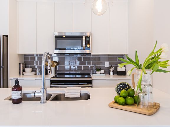 Quartz countertopsStainless steel kitchen appliancesIn-suite laundry