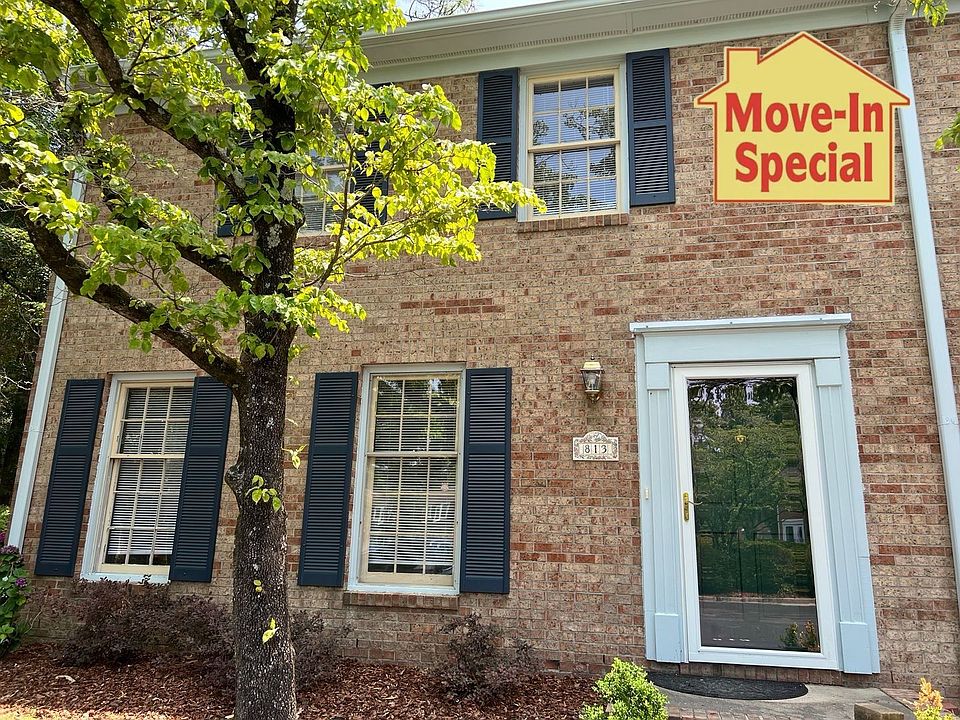 Charming two story brick town house end unit in Stones Throw community. Minutes to UNCW and Wrightsville Beach. No carpet in this unit. Formal living room with built in book shelves. Half bath down stairs. Galley kitchen with white coastal cabinets and tile back splash. Large family room with electric fire place that overlooks the back court yard. The fully fenced back court yard is a nice size space with large covered area for relax or summer cook outs. This space backs up to private wood area so it feels like very peaceful. Upstairs you will find three bedrooms with two full bathrooms. This community offers a pool and has good overflow parking for guest. Located in Central Wilmington close College Rd shops and restaurants. In the mile to UNCW, easy access to hwyI-40, Mayfair shops and Wrightsville Beach. Pets case by case. Washer and dryer included. Students considered with good rental history and co-signers.