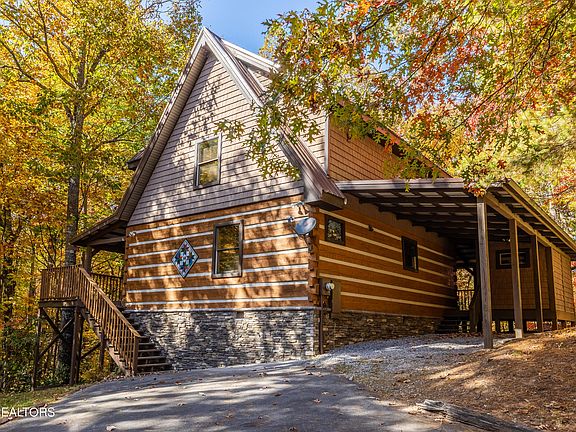 Whether you are looking for a SHORT TERM RENTAL, WEEKEND GET AWAY, or PERMANENT HOME, this fully furnished meticulously maintained 2 Bedroom/2 bath cabin located in the heart of Townsend, TN will prove to be everything you're hoping for and then some! Located just a few miles from the entrance to the Great Smoky Mountain National Park--the most visited park in the world-- this is nestled on nearly an acre (0.9) in Stonegate, a development where you'll find the perfect blend of nature and wildlife surrounding your home. Leave all your cares at the door as you enter your retreat! The home provides the perfect blend of hardwoods and natural light throughout. The open and spacious great room ,w cathedral ceiling and soaring stone fireplace, open into the fully equipped kitchen and eating area. The main level bedroom ensuite features a romantic spa tub and it's own private access to the porch. Upstairs you'll find a common area well suited for work or relaxation—offering beautiful mountain views through the wall of windows. Laundry and another bedroom and full bath are also located on the 2nd level. The 3/4 wrap around covered porch provides the perfect spot to enjoy mornings in a rocker or afternoons curled up with a good book on the porch swing. Crisp, fall evenings can be enjoyed by be spending time in the hot tub. Parking is not an issue and there is a carport for covered parking. Enjoy a serene drive through beautiful Cades Cove, a hike along over 800 miles of trails inside the park, a fly-fishing expedition on the Little River, or a picnic at Metcalf Bottoms. You'll enjoy dining spots, too numerous to mention, and many local festivals to suit any interest. Townsend is lovingly known as the Peaceful Side of the Smokies. Secluded and quiet—you are close to nature but also in the heart of it all! Whether you need a permanent home, weekend getaway, or short term rental investment property—this meticulously maintained, fully furnished home is ready for you!