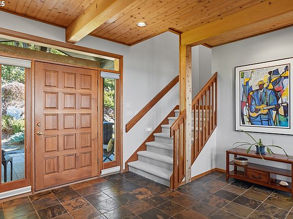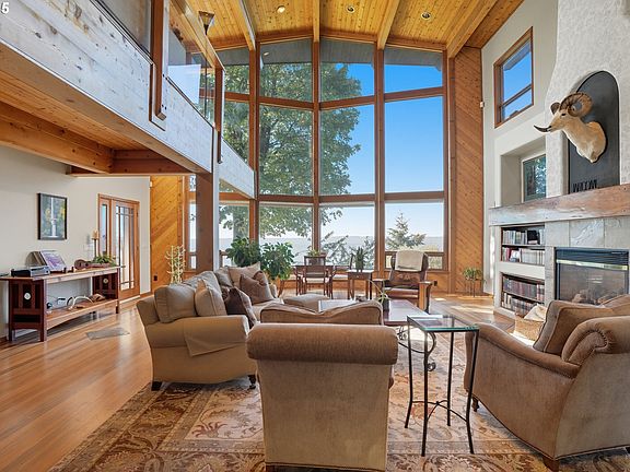 Open 1-4pm Sun, 19th Oct. Peace and tranquility awaits you at Varsity Lodge, Custom Lindal cedar-built retreat perched on a peaceful hillside overlooking the Columbia River and Oregon Coast. Designed for those who appreciate craftsmanship, comfort, and connection to nature, this remarkable 4-bedroom, 4.5-bath home offers 4798 square feet of luxury living where modern elegance meets timeless wood artistry. Expansive floor-to-ceiling windows flood the home with natural light and frame sweeping panoramic views from nearly every room. Distinctive cedar finishes and soaring 25-foot wood-beamed ceilings create a warm, welcoming ambiance, while the open floor plan blends sophistication with comfort. The great room centers around a stunning stone fireplace and flows seamlessly into the dining area and chef’s kitchen featuring polished granite countertops, premium stainless appliances, and rich custom cabinetry that celebrates Lindal’s signature craftsmanship. Both primary retreats one on the main level and one upstairs include private fireplaces, ensuite baths with spa-like finishes, and breathtaking views. Additional living areas include a sunlit artist’s studio, reading nooks, and cozy alcoves that invite relaxation and creativity. The custom daylight basement redefines luxury living with an entertainment lounge and bar, game area, private gym, and inspiring studio. Behind a secure vault door lies a private indoor archery range — a rare and extraordinary feature for the discerning enthusiast. Set on 2 lush acres, the property is surrounded by evergreens and landscaped gardens featuring a tranquil pond and cascading waterfall. Expansive decks overlook the river, offering the perfect setting for outdoor dining and sunset views. A three-car garage with a full workshop, built-in shelving, and mower access completes this exceptional estate. Varsity Lodge is more than a home, it’s a lifestyle.